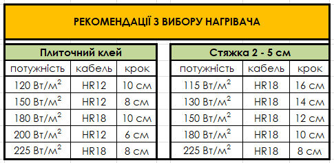 Підберіть нагрівач у відповідності з рекомендаціями, наведеними вище